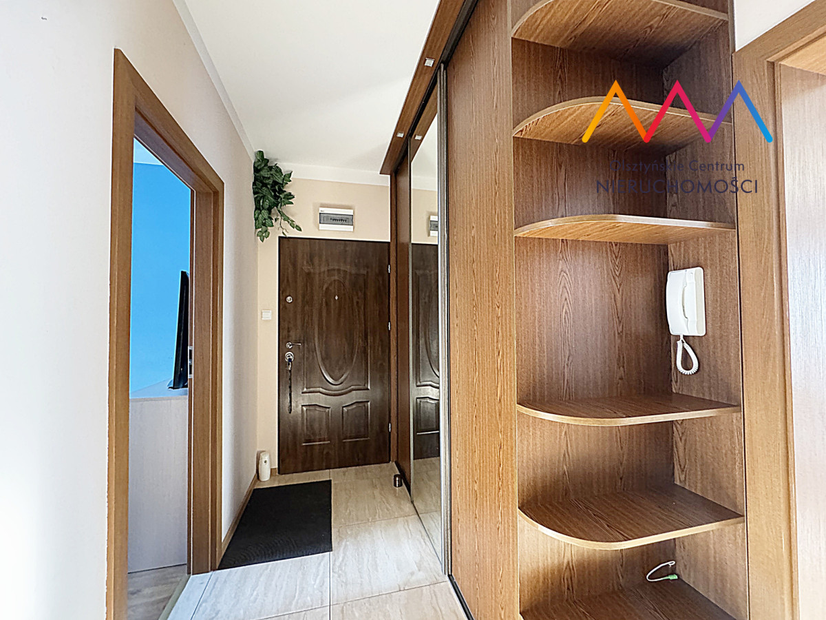 Kuchnia wyposażona jest w płytę grzewczą, piekarnik, okap, zmywarkę oraz lodówkę. W przedpokoju wieszak na ubrania oraz duża szafa . Pokoje w pełni umeblowane, wszystkie meble widoczne na zdjęciach pozostają do użytku najemców.