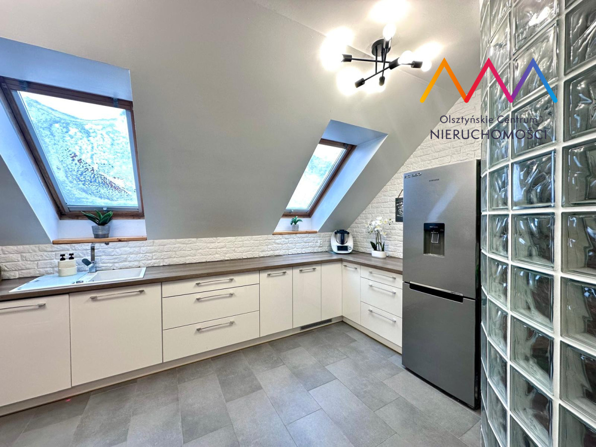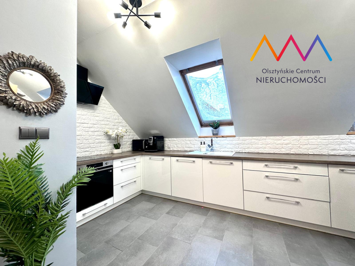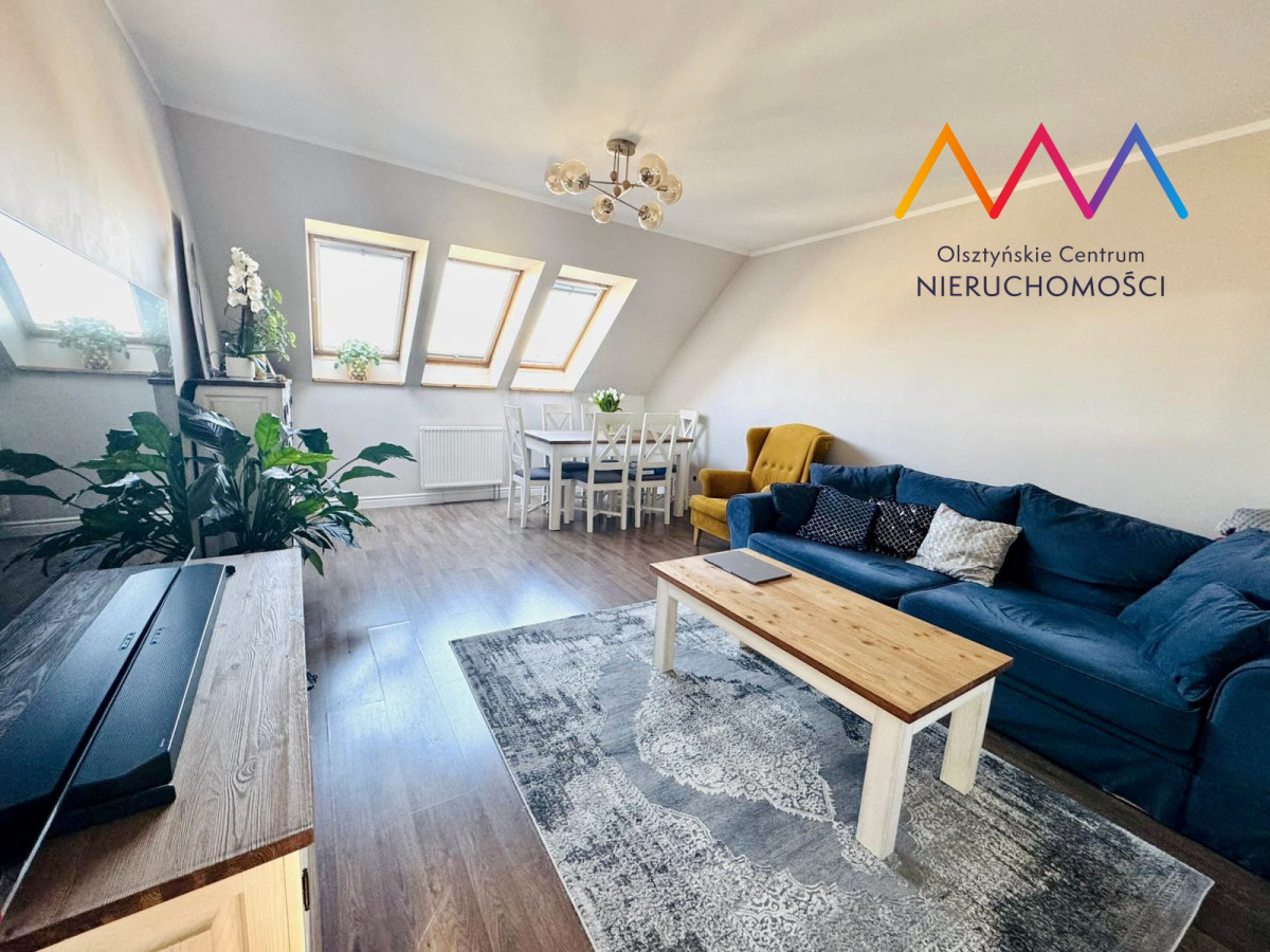 Dzięki skosom oraz zagospodarowanej przestrzeni poddasza mieszkanie oferuje znacznie większą powierzchnię użytkową – po podłodze to ponad 70 m², co daje wyraźnie więcej realnej przestrzeni niż wskazuje metraż w dokumentach. Skosy nadają wnętrzu przytulny i wyjątkowy klimat.