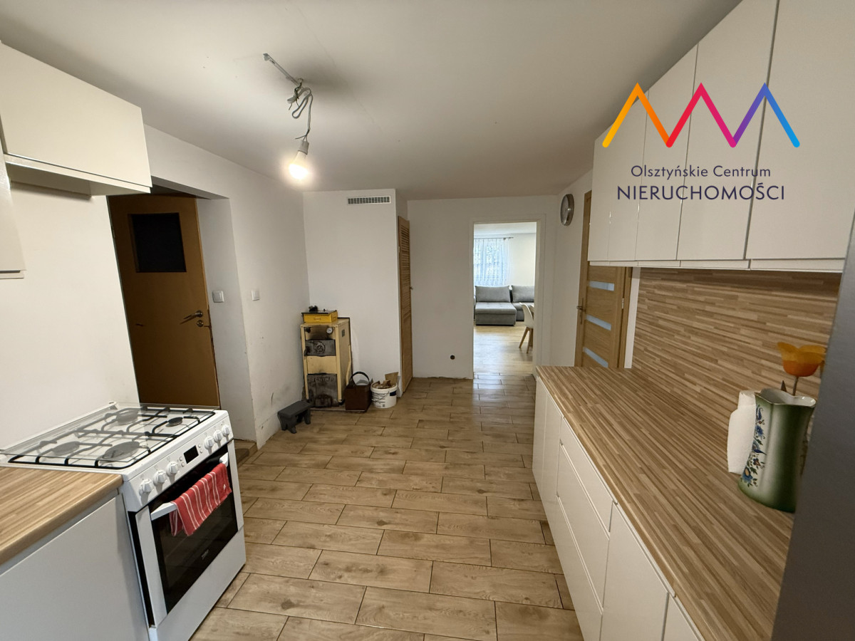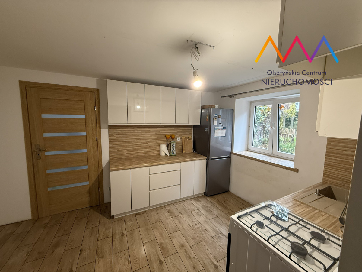 Oferowana nieruchomość usytuowana jest na parterze i przynależy do niej część strychu bezpośrednio nad mieszkaniem, okna wychodzą na przynależną działkę. Mieszkanie jest po częściowym remoncie, ściany wyszpachlowanie, terakota, panele, zabudowa kuchenna, okna PCV, piec CO. W cenie pozostaje część wyposażenie salonu.