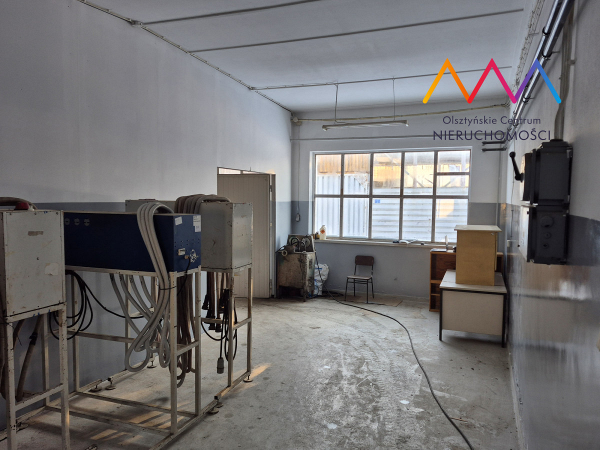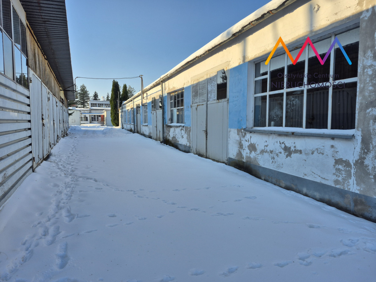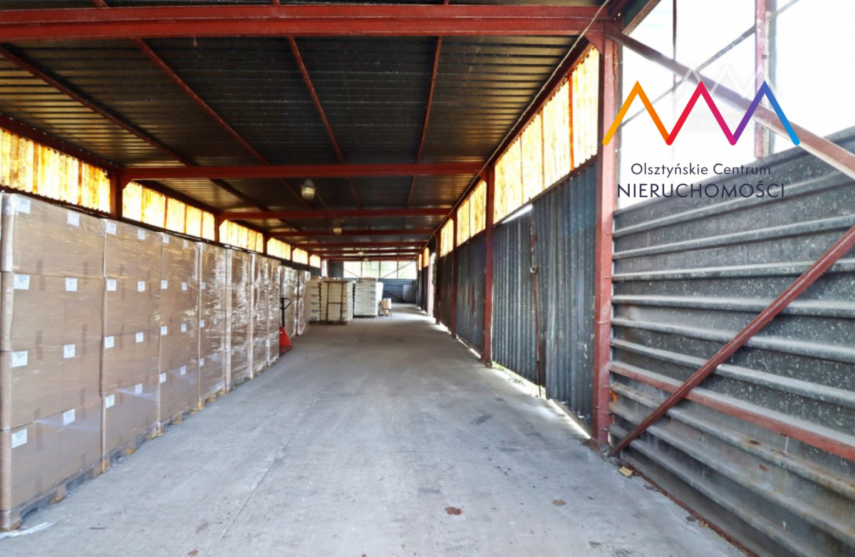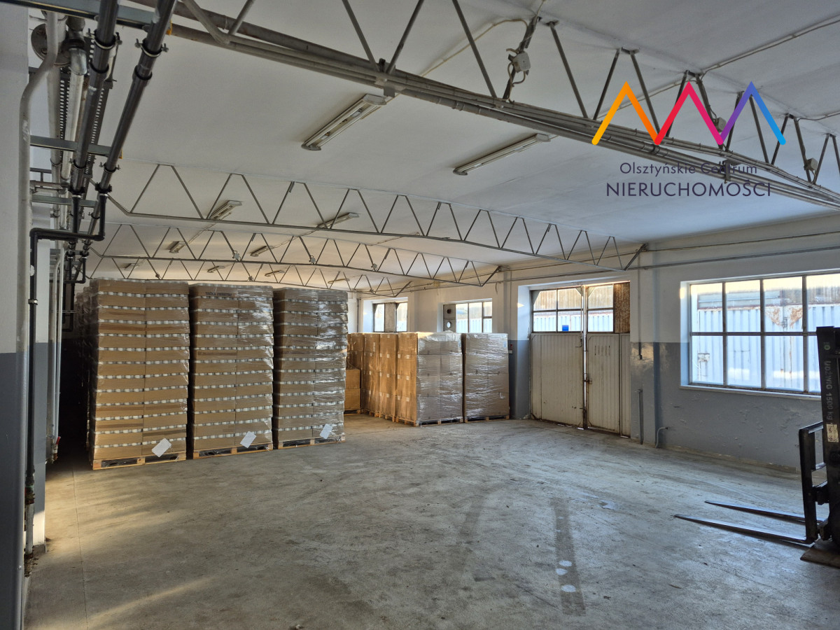 W ogłoszeniu zamieszczono zdjęcia wnętrz budynków oraz hali magazynowej.