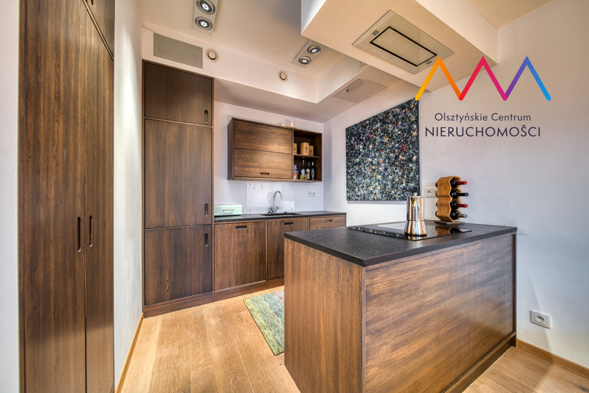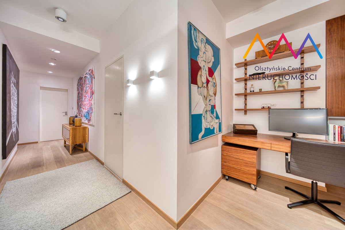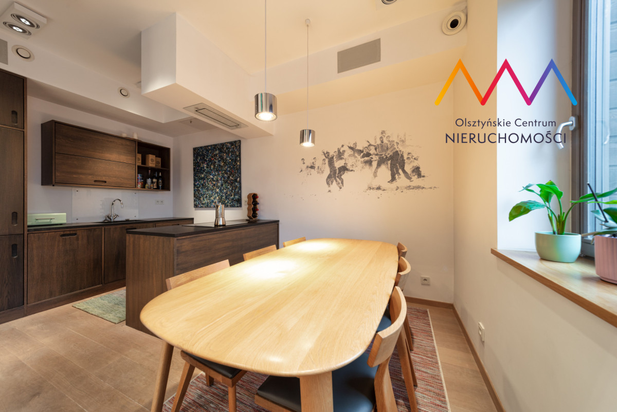 Apartament znajduje się w budynku Łyna Park przy ul. Grunwaldzkiej, tuż przy rzece Łynie i olsztyńskim zamku. Z okien rozciąga się widok na starówkę. W pobliżu są sklepy, usługi, szkoły oraz komunikacja miejska. Okolica łączy bliskość centrum z ciszą i prywatnością.