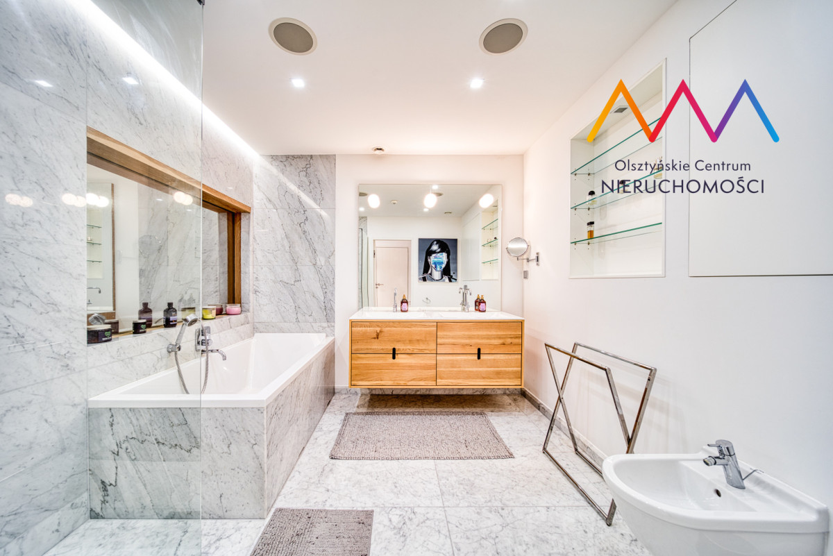- Taras zaprojektowany z myślą o relaksie i spotkaniach na świeżym powietrzu, z miejscem do grillowania oraz przepięknym widokiem na olsztyńską starówkę i rzekę Łynę.