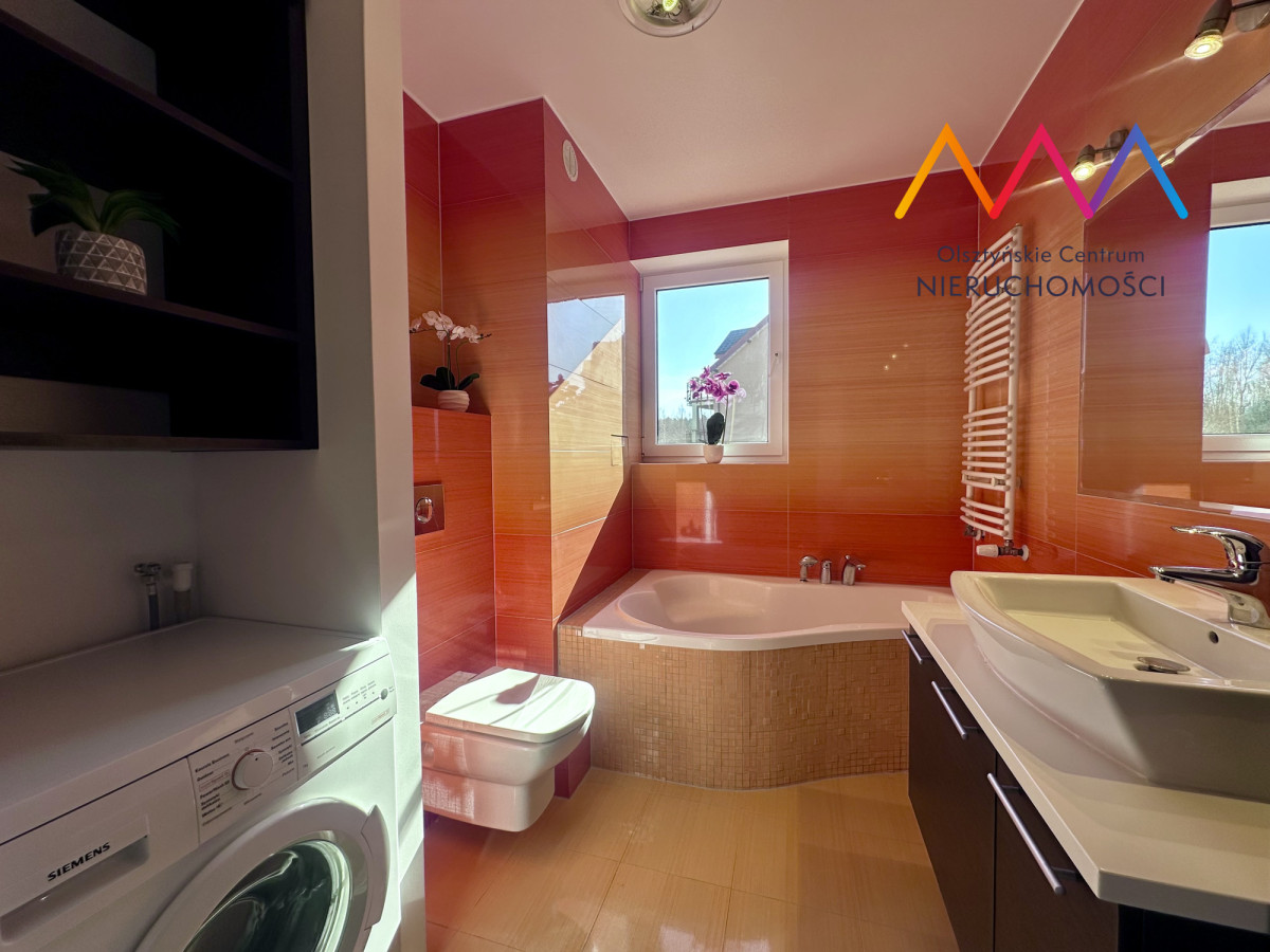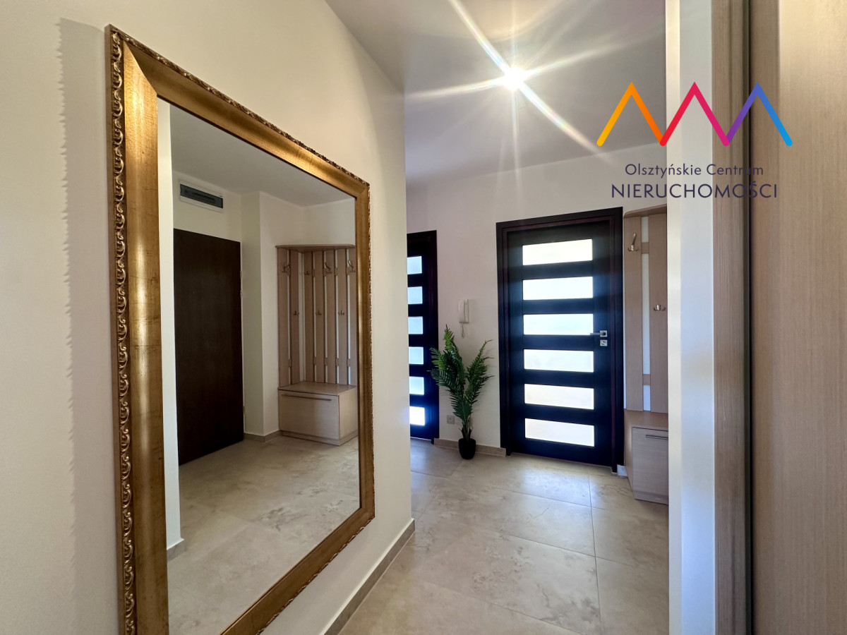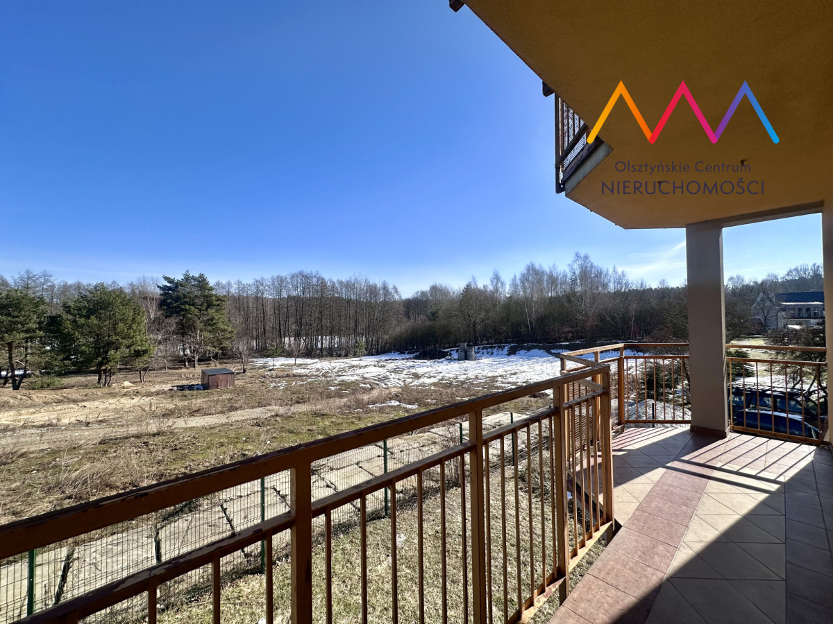 - przestronny balkon, z którego rozciąga się wyjątkowy widok na jezioro Siginek oraz otaczającą zieleń – idealne miejsce na poranną kawę lub odpoczynek po pracy.