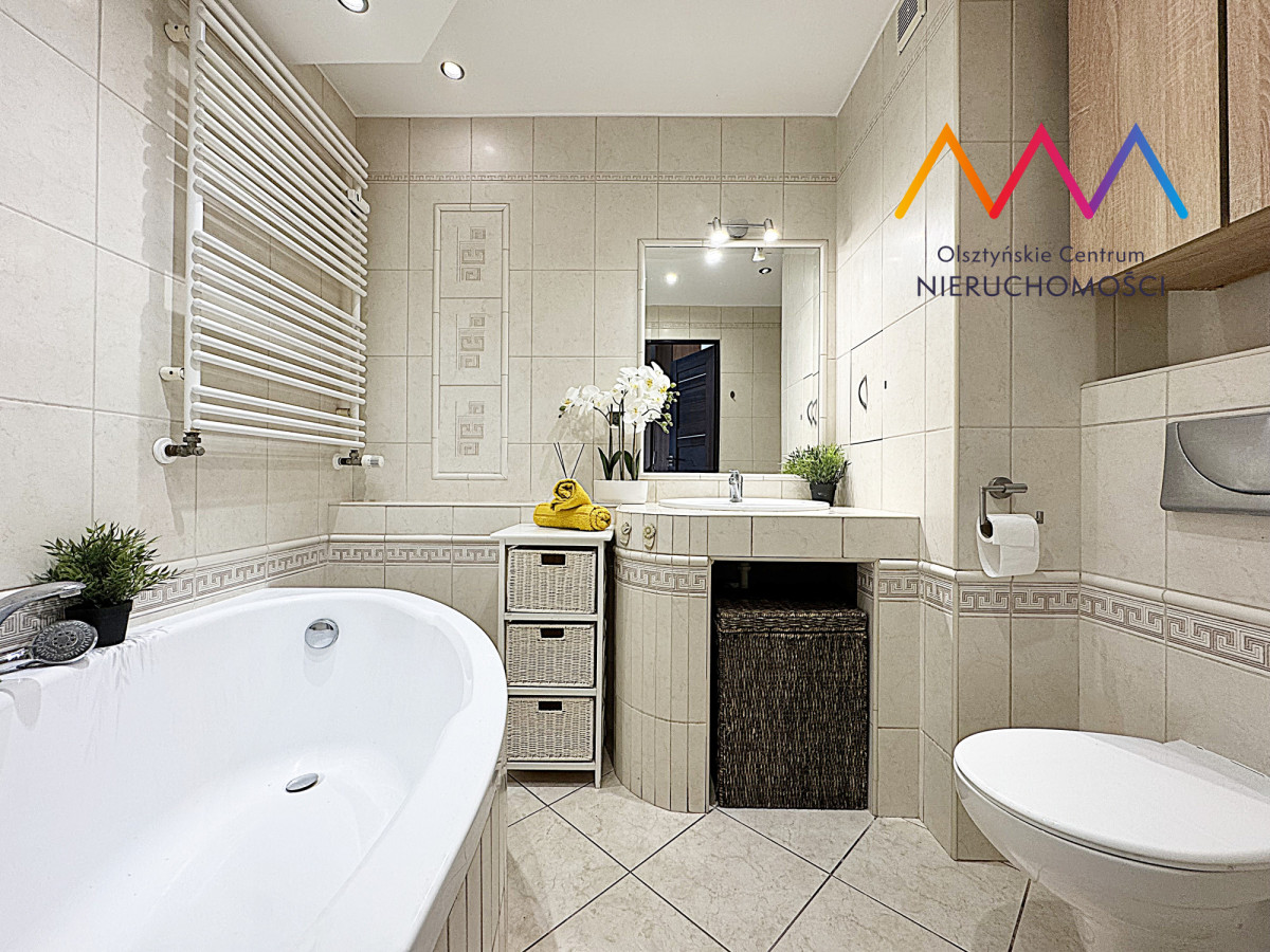 Lokal został wykończony z wysokiej jakości materiałów. W mieszkaniu położone są drewniane parkiety, które były cyklinowane około 3 lata temu. Łazienka wyposażona jest w dużą, narożną wannę – idealną do relaksu po długim dniu. Mieszkanie jest ciepłe, ciche, a budynek zamieszkiwany jest przez miłe, spokojne sąsiedztwo.