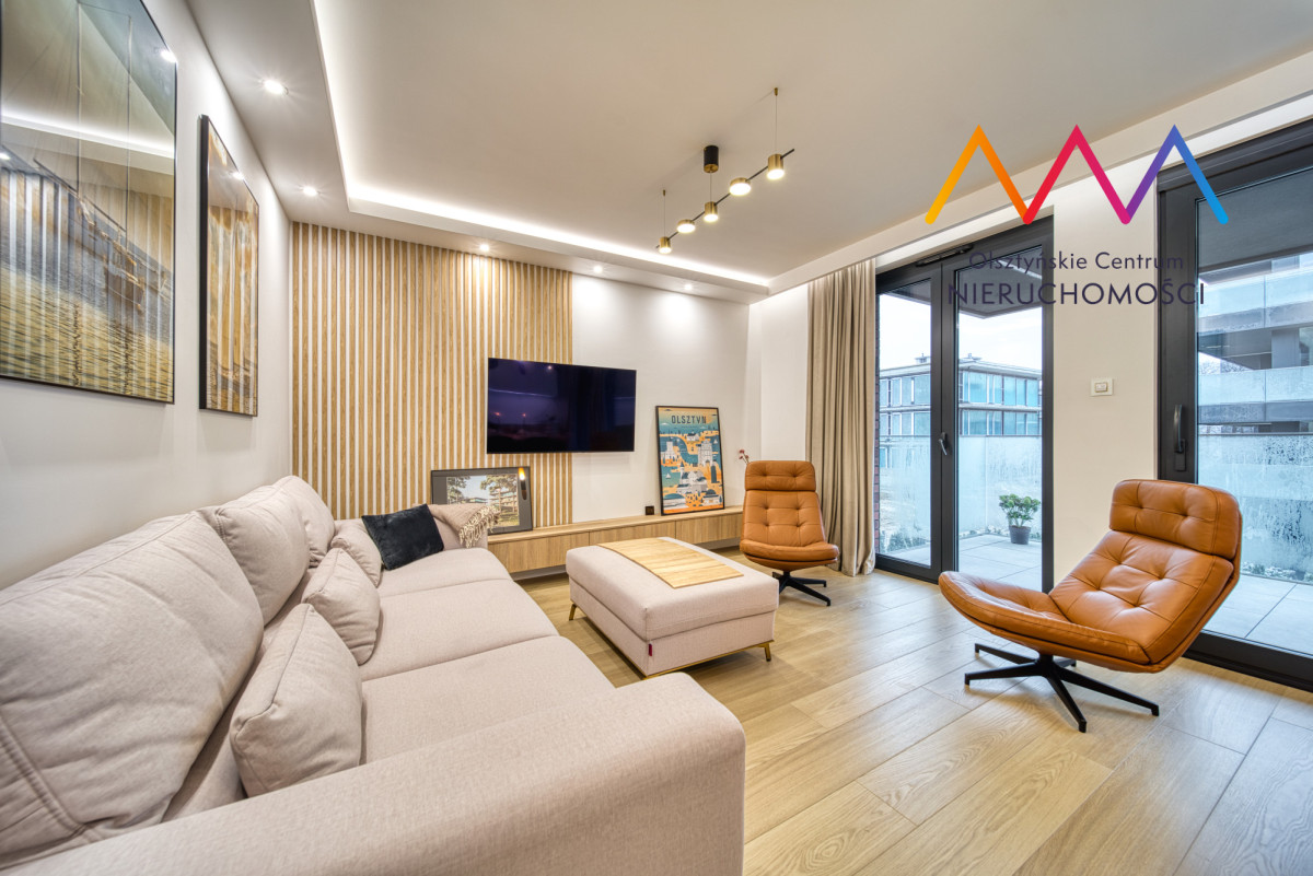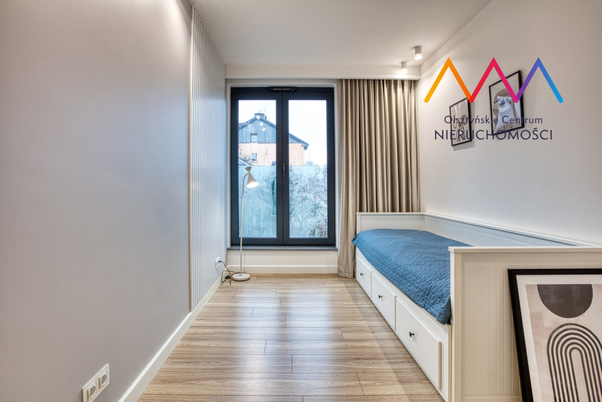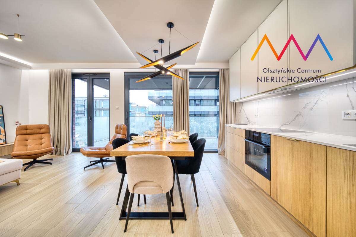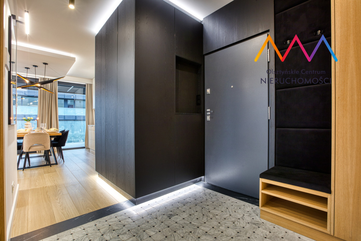 Mieszkanie zostało wykończone pod klucz z dbałością o każdy detal, przy użyciu materiałów najwyższej jakości. Z tarasu rozciąga się widok na jezioro Ukiel. Wnętrze zachwyca połączeniem elegancji i funkcjonalności – gotowe do wprowadzenia bez żadnych nakładów.