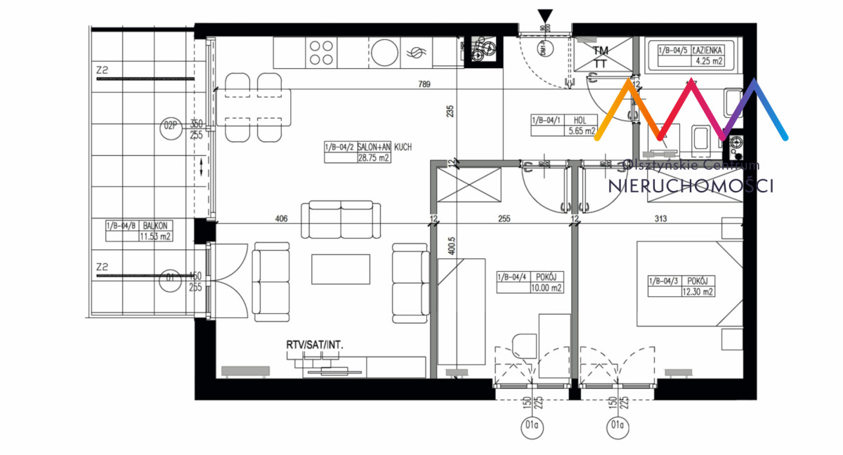 • salon z aneksem kuchennym 28,75m2